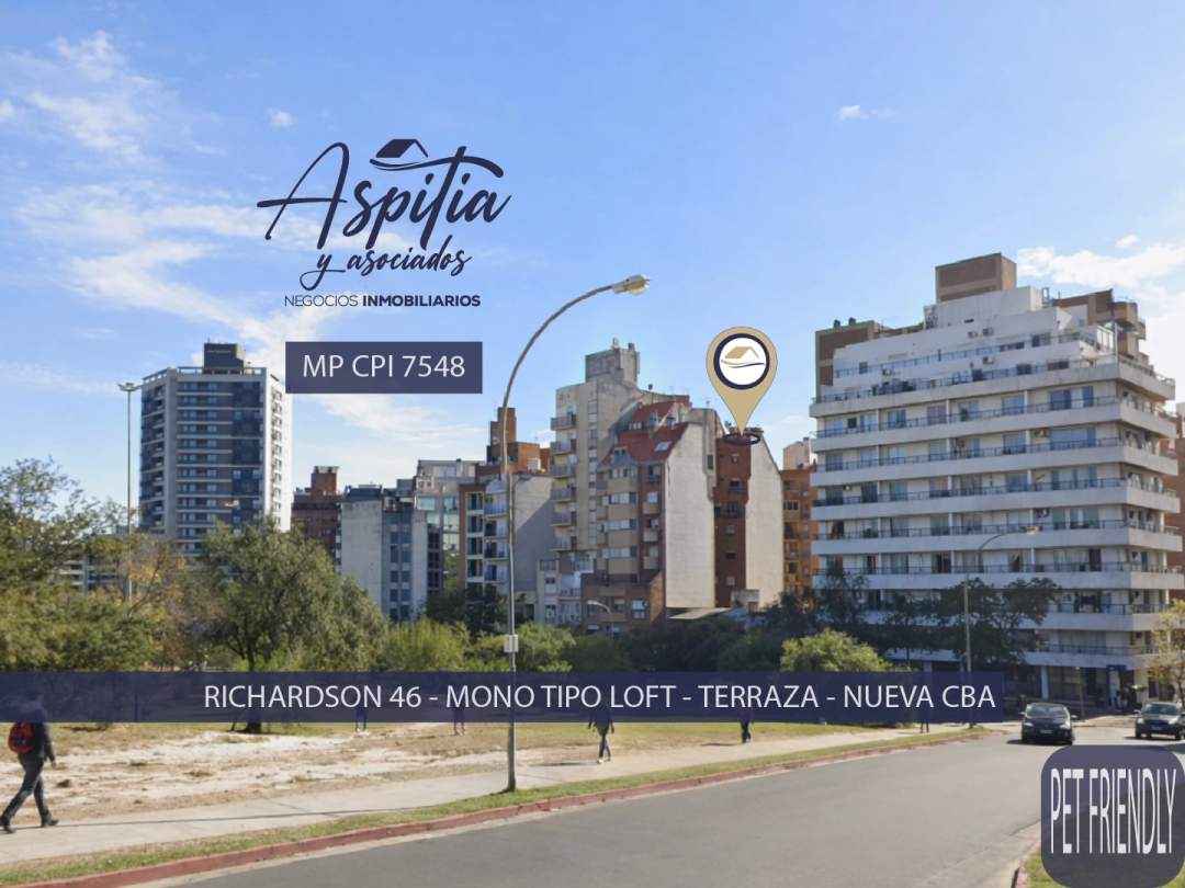 *** ALQUILADO *** Monoambiente en alquiler ubicado en el último piso, contrafrente, dentro de un edificio residencial sobre calle Richardson 46, en el barrio Nueva Córdoba. La unidad cuenta con altillo accesible por escalera metálica y terraza de uso exclusivo.